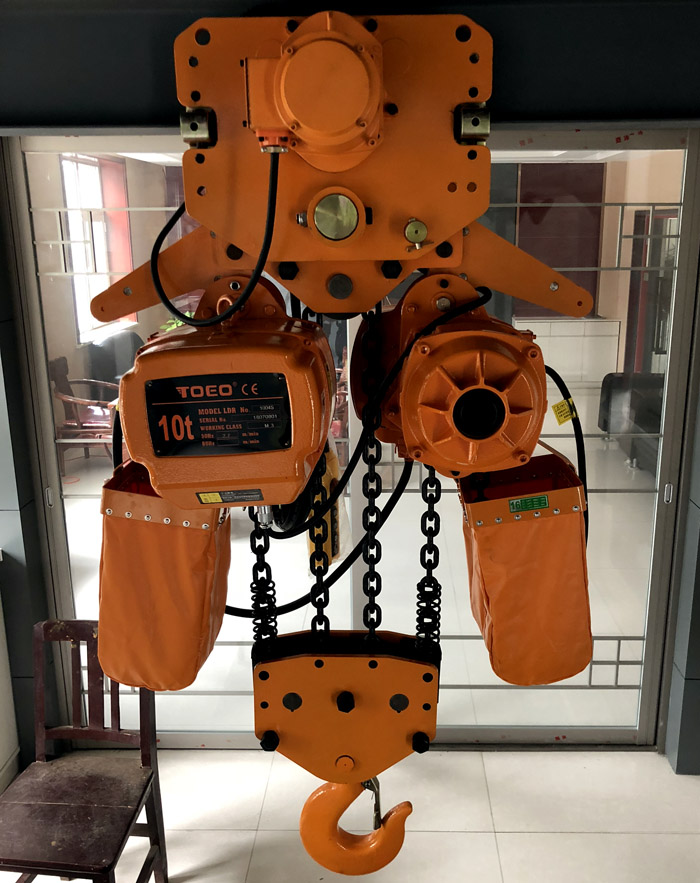 8、对于一些体积较大的物件,应考虑是否安装两个或多个环链电动葫芦共同起吊或者轮换使用;
