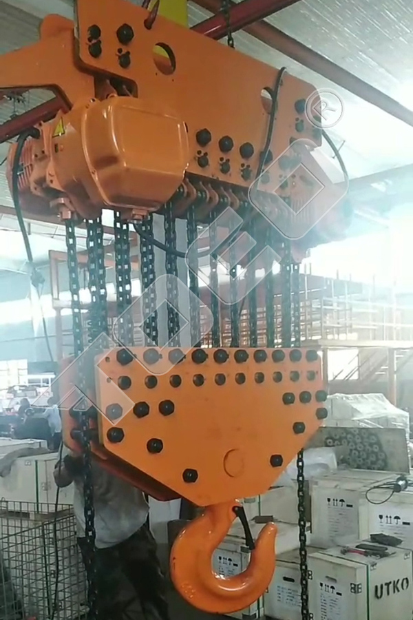 还有就是减少与水的接触,室外使用环链电动葫芦是要配备防雨罩等设备阴雨天气禁止使用,存放时也要注意保持干净整洁。